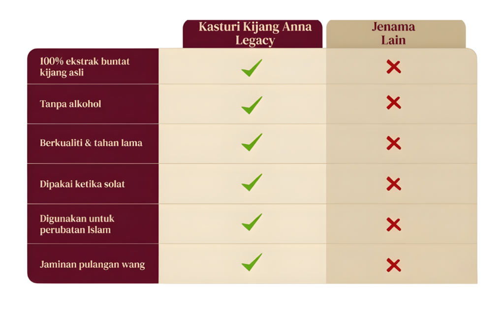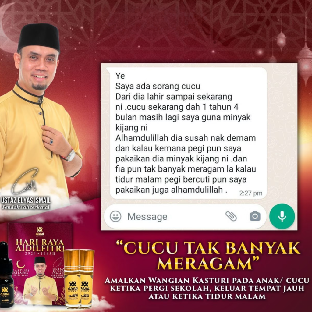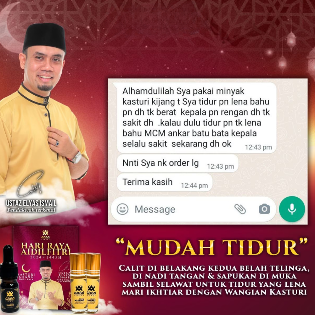 ✓ Wangi Sewaktu Ibadah: Membantu khusyuk dalam solat.